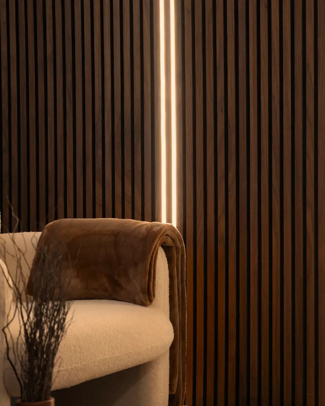Acupanel Glow LED lights are a concealed lighting system designed to integrate neatly within the slats of our original Acupanel range. They add a soft, ambient glow to the wall while remaining discreet when switched off.